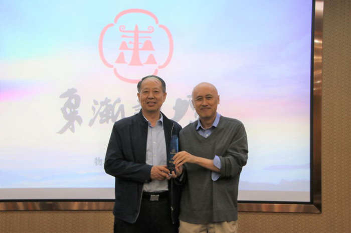 满宝元对嘉宾的到来表示欢迎和感谢,向主讲嘉宾颁发“东渐讲坛”奖杯。