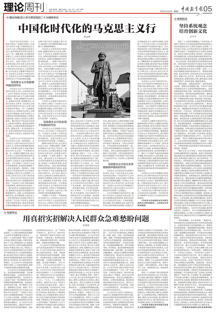 11月10日,《中国教育报》05版刊发我校商志晓教授文章《中国化时代化的马克思主义行》,全文如下: