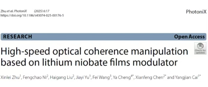近日,山东师范大学蔡阳健教授团队在国内著名期刊《PhotoniX》(影响因子19.1)上发表题“High-Speed Optical Coherence Manipulation Based on Lithium Niobate Films Modulator”的研究论文,创新性地将铌酸锂薄膜调制器应用于光场相干性调控,这一成果不仅为该领域研究人员提供了新型调制器件,也为铌酸锂薄膜调制器开辟了新的应用场景,展现了其在光场自由度调控中的潜力,有望在多学科交叉领域引发新一轮技术革新。