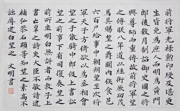 在这一目标的督促下,吕文明一直在书学研究的道路上辛勤耕耘。国家社科基金书法类课题每年的立项基本维持在两到三项,省社科规划项目也极少为书法类课题立项,CSSCI来源期刊书法学科只有一本《中国书法》,面对这样的困境,吕文明竟然一路冲杀,屡有斩获。同时,吕文明还围绕书法学科建设的本体问题进行了深入探究,撰写了一系列研究文章,在学界引起强烈反响。2014年,吕文明获得中国书法家协会和首都师范大学共同举办的全国首届高等书法教育论坛优秀论文奖(最高奖),2016年入选中国书法家协会和郑州大学主办的2016全国高等书法教育(郑州)论坛。吕文明对于书法学科建设所做的努力逐渐得到学界认可,曲阜师范大学书法学院的陈培站博士说:“如果每个高校的书法教师都像文明兄这样做,书法学科的振兴将指日可待。”