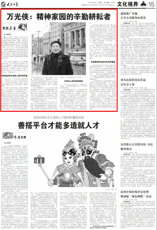 平和、低调又充满睿智,是万光侠教授的真实写照。在山东师范大学从教25年,他像一名辛勤的园丁,兢兢业业地投身于人的精神家园建设。作为学者,他与时代发展同呼吸共命运;作为教师,他甘做一片绿叶,静听花开的声音;作为党的理论工作者,他春风化雨,润物细无声。